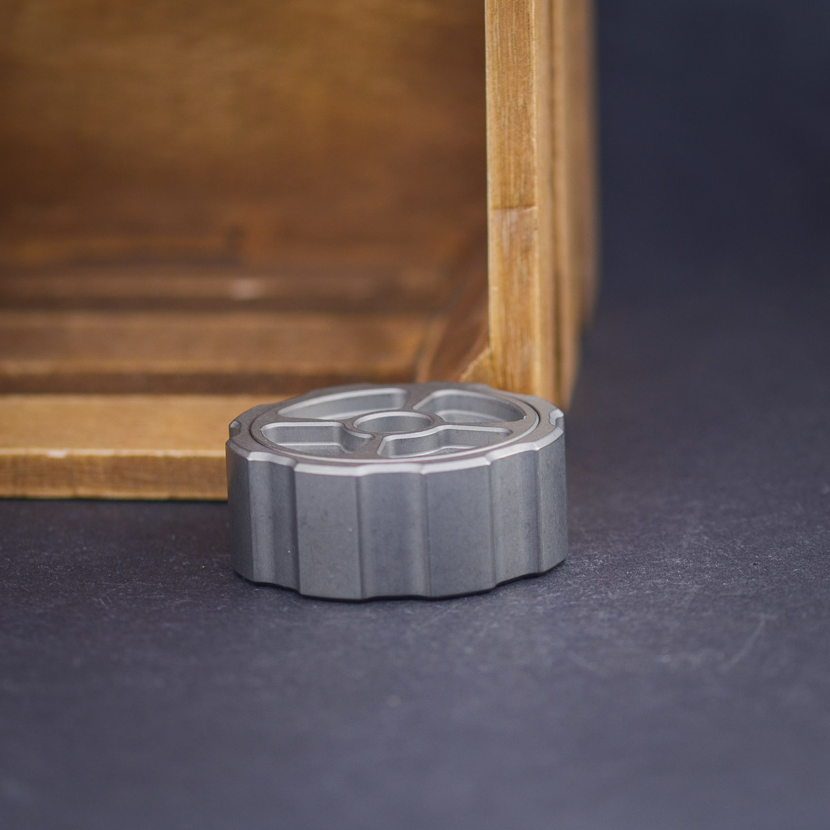 Machined from a solid block of titanium with an initial weight of a hefty 316 g, it’s slimmed down to a lean 136 g including the lid. Compact, solid, premium. Every single piece is marked with the crowned Anso “A” logo – a small but mighty nightmare for any CNC mill.