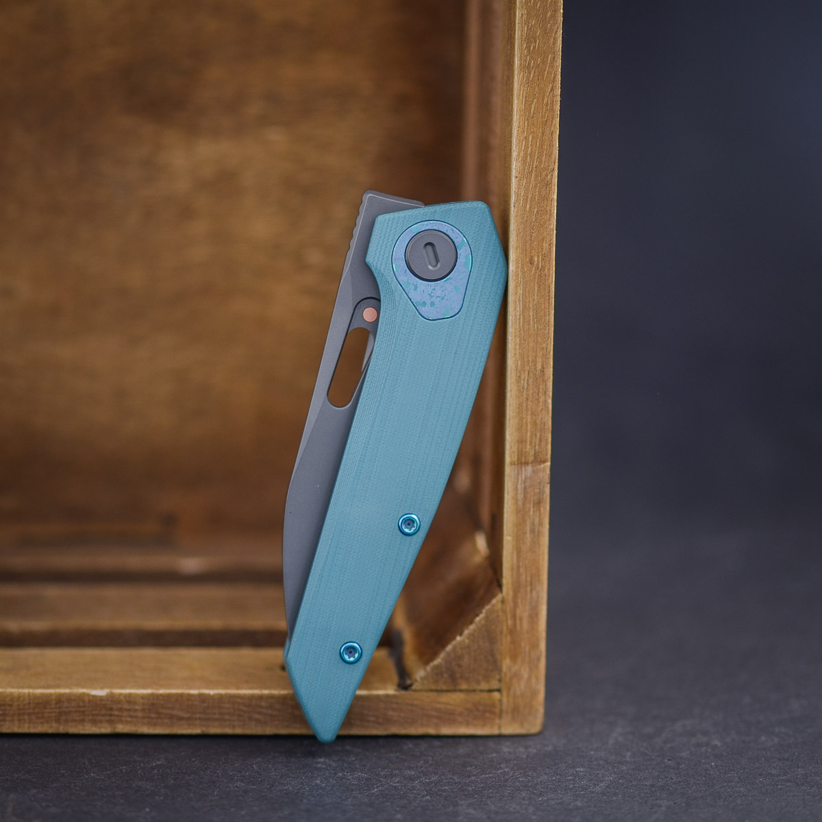 The base knife is the VK-VOID G10 with a Magnacut blade and a grey PVD finish. The blue-grey G10 handle remains unchanged – robust, functional, and with that signature look that made the VOID so popular in the first place.
