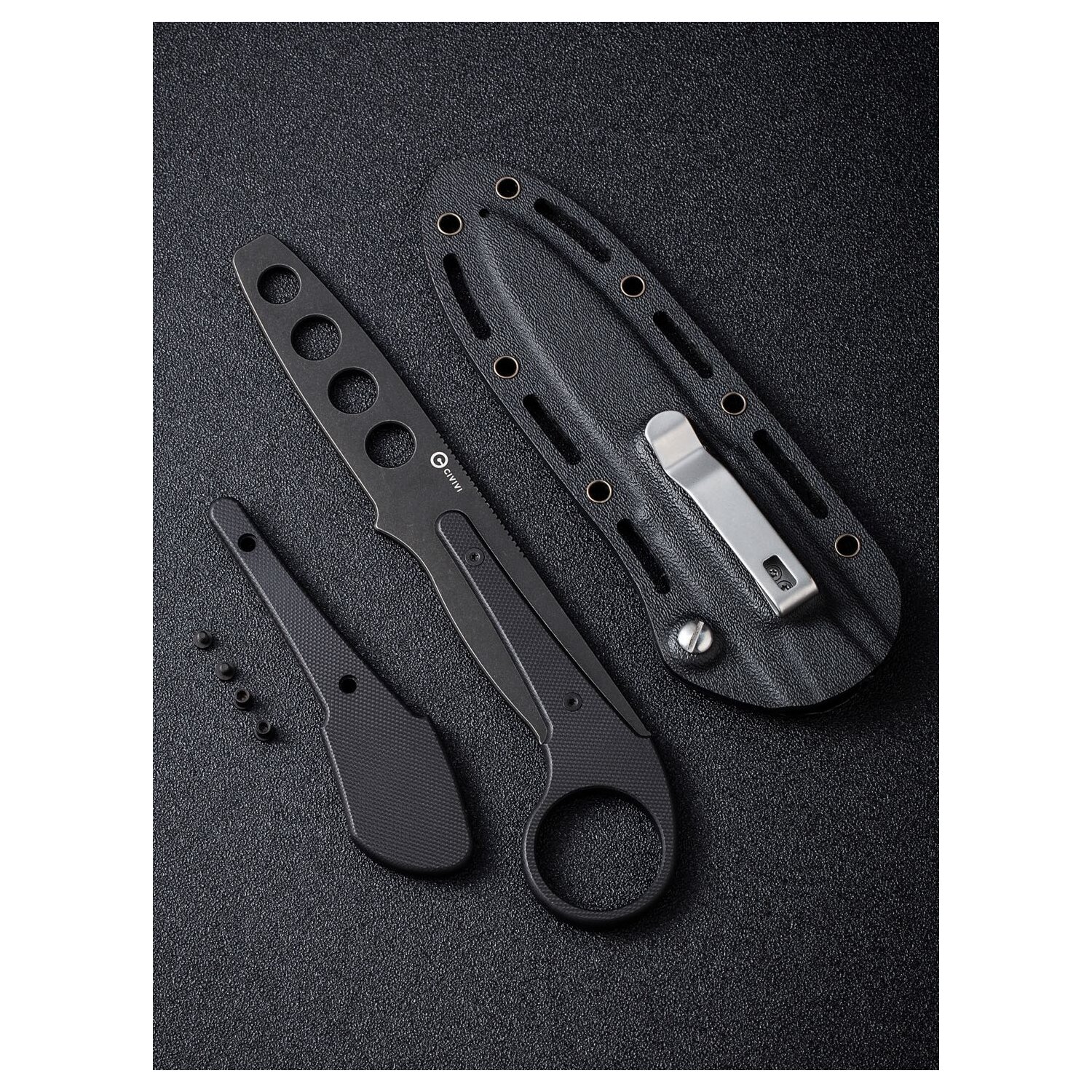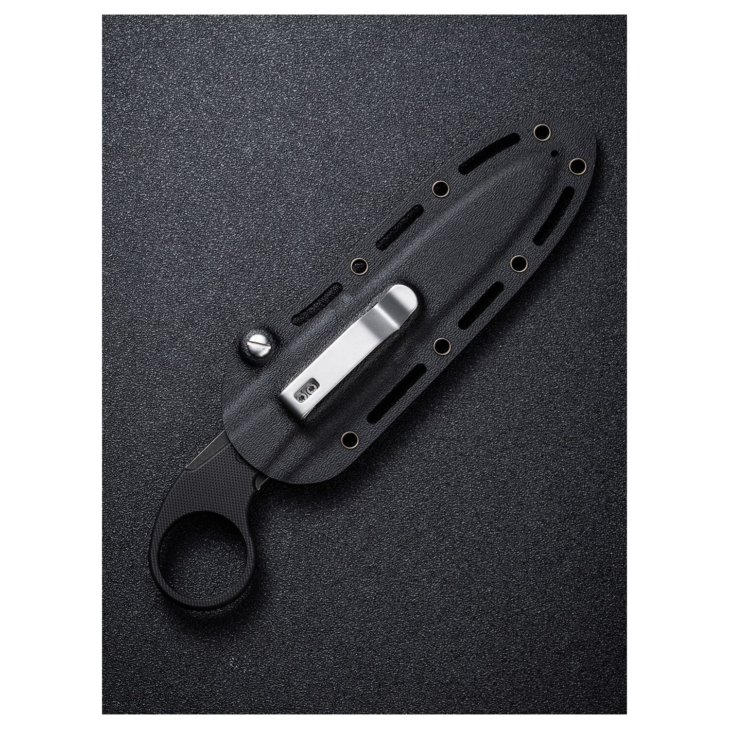 - Kydex sheath and clip included