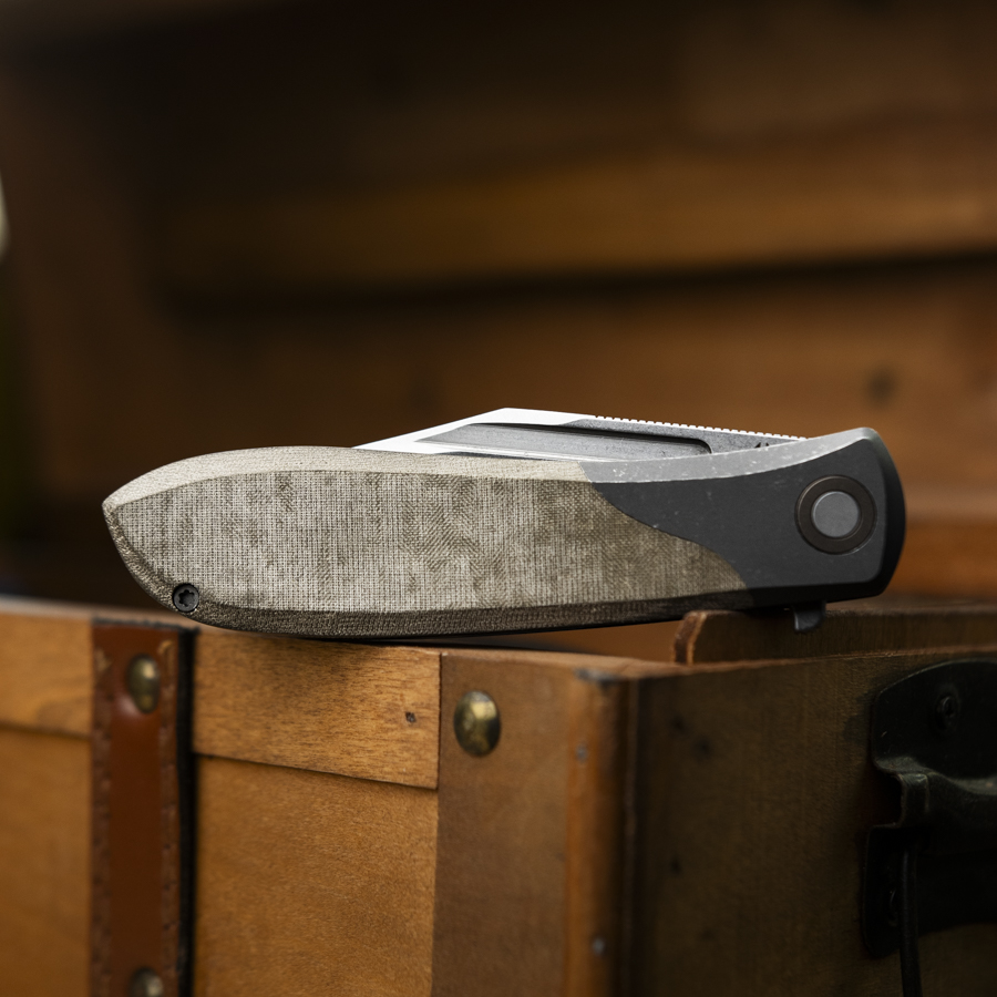 The blade made of S90V steel is slightly beefier to keep the tip stable even in tougher situations. Thanks to the hollow grind, it still cuts as sharp as Doc Holliday’s Colt. For the first time at Jack Wolf, there’s a flipper tab, combined with a fuller on both blade sides – it feels as smooth as reloading a revolver.