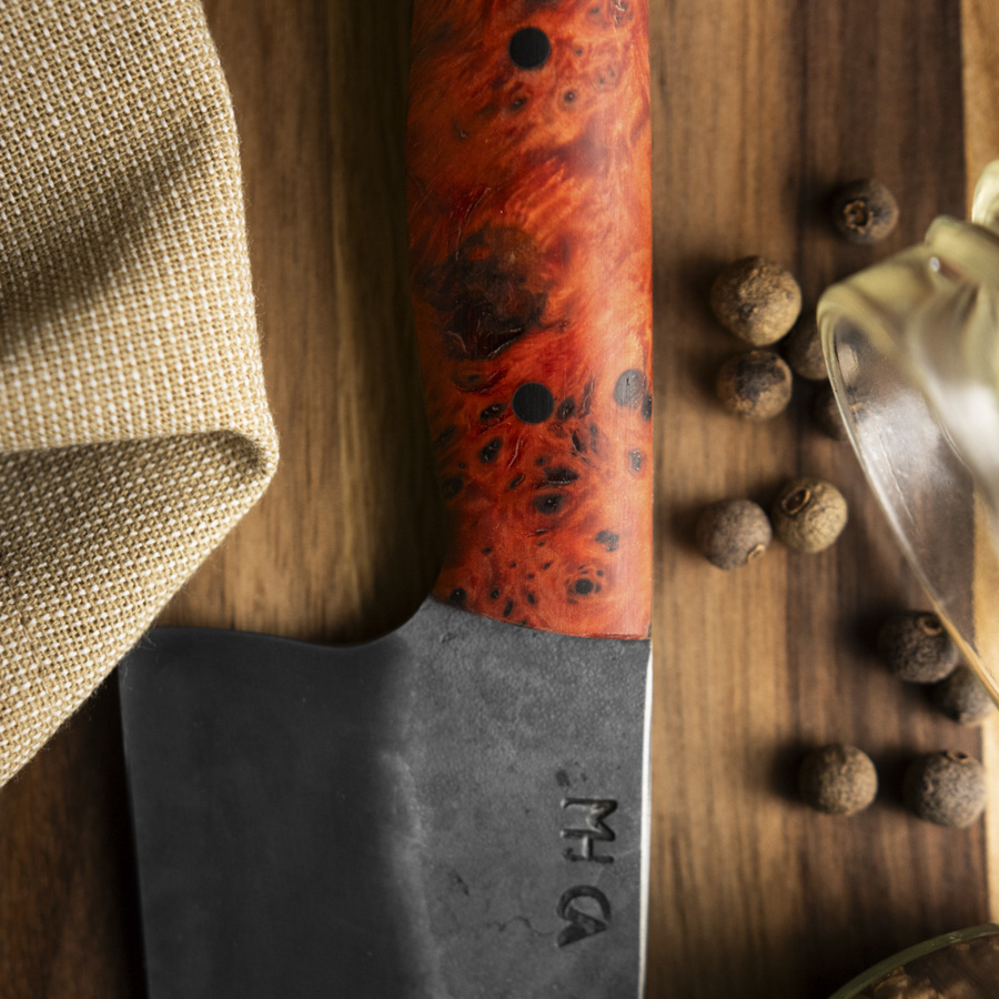 - Handle material: red poplar burl.