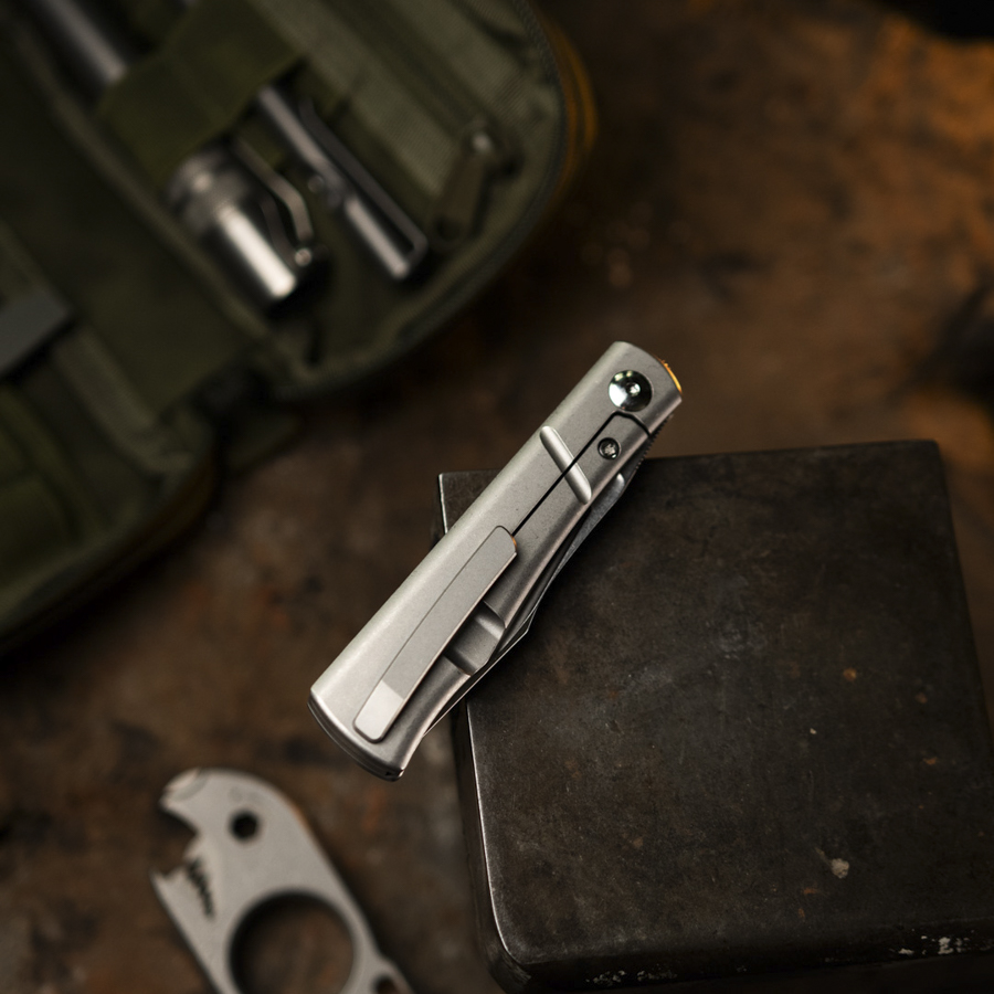 - Titanium handle with Stonewash finish
